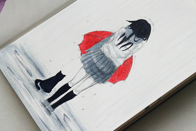 идея была такая - полностью черно-белый рисунок с одним цветным элементом)